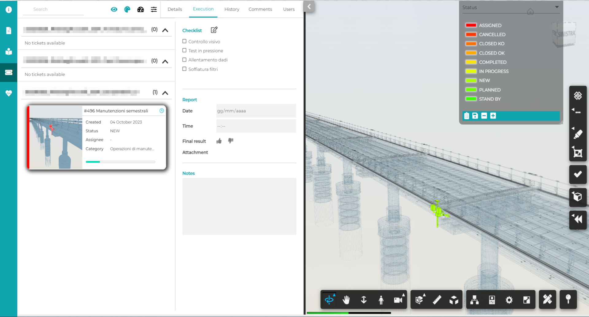 L’impostazione dei processi di manutenzione associata agli oggetti dei modelli 3D può essere condotta in Truspace con diversi livelli di dettaglio.