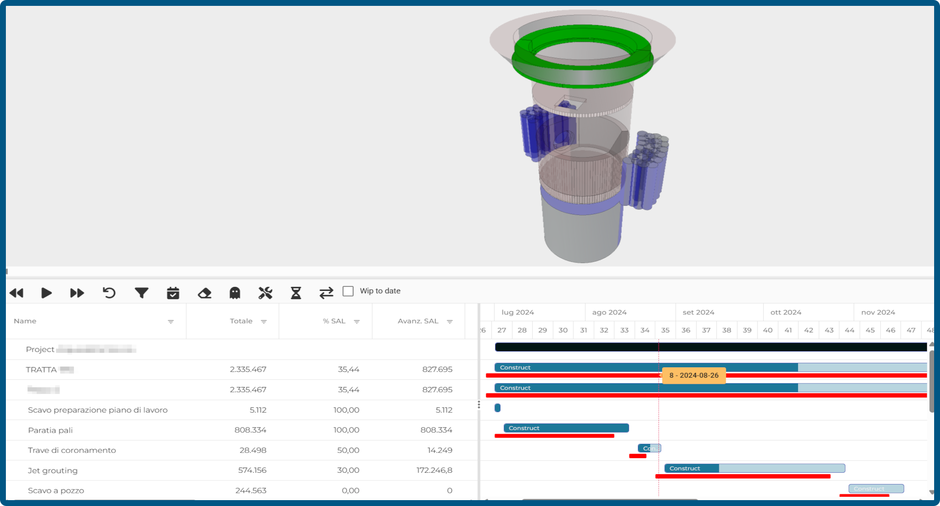 Importare o creare dinamicamente la relazione tra Modelli 3D e WBS, simulando l’evoluzione del cantiere nel tempo